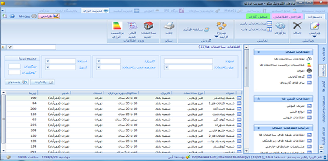 · امکان ثبت اطلاعات تمامی مصرف کننده های انرژی سازمان
