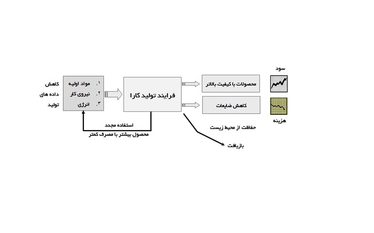 استفاده منطقي از حاملهاي انرژي با توجه به سنگيني بار مالي يارانههاي پرداختي دولت، از اهميت ويژهاي برخوردار است. فرايند توليد كارا منجر به توليد محصولاتي مطمئنتر و كاهش ضايعات و به تبع آن افزايش سود و كاهش هزينههاي توليد ميگردد. علاوه بر آن بازيافت ضايعات و استفاده مجدد در خط توليد، منجر به توليد محصول با مصرف نهادههاي توليد كمتر ميگردد. در بين نهادههاي توليد (مواد اوليه، نيروي كار و انرژي)، نهاده انرژي از انعطاف بيشتري جهت كاهش برخوردار بوده و تجربيات جهاني و داخلي نشان ميدهد با استفاده از مفاهيم مديريت انرژي امكان كاهش 5 تا 30 % در مصارف و هزينههاي انرژي واحدهاي صنعتي بدون اخلال در فرايند توليد و كاهش مطلوبيت از انرژي امكانپذير است(شكل زير).